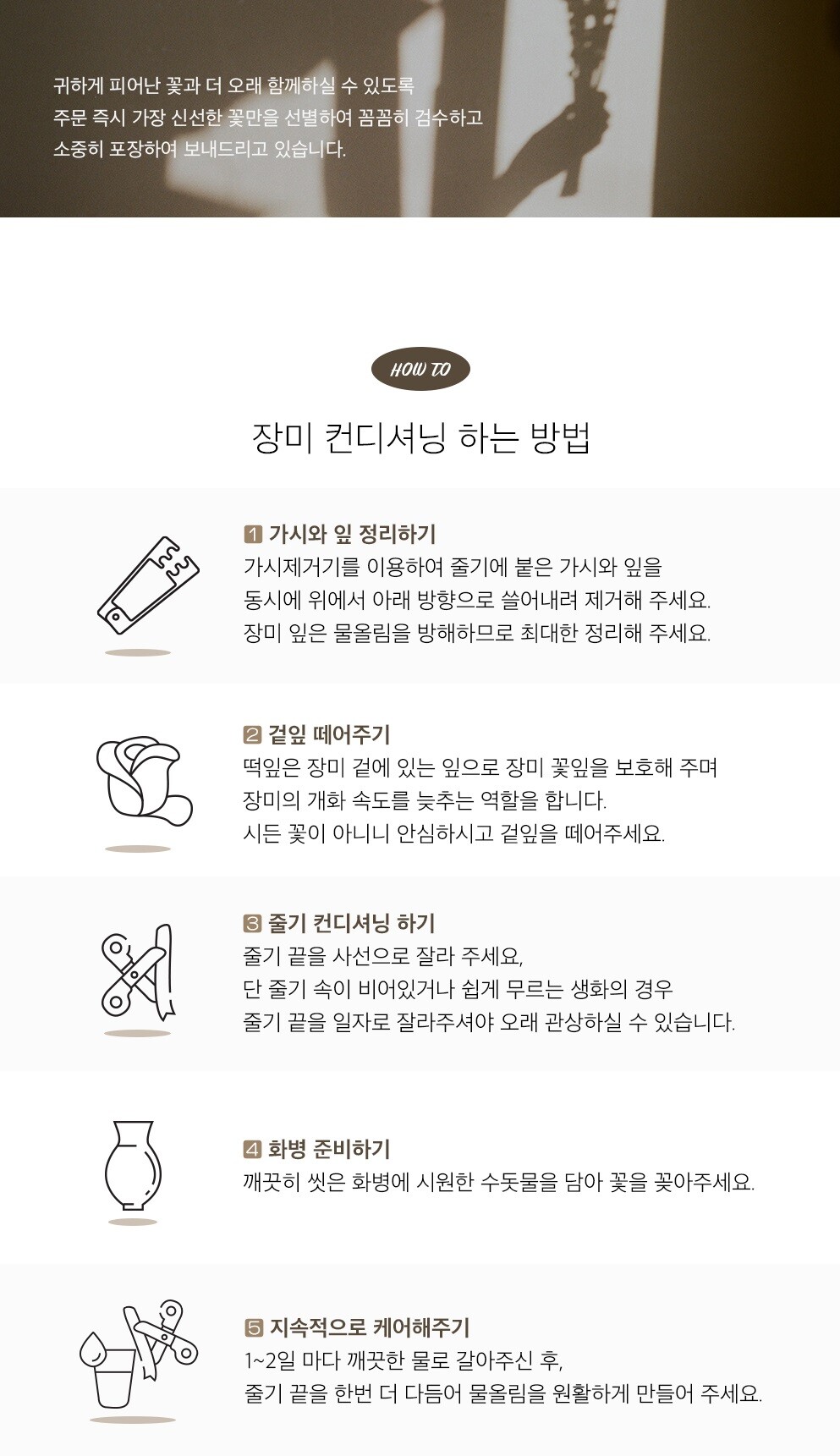 - 컨디셔닝 되지 않은 농장에서 출하된 그대로의 생화가 발송됩니다.
