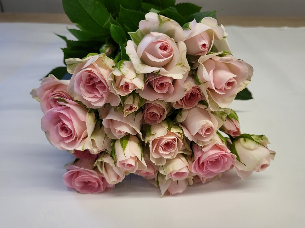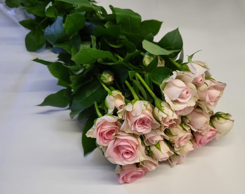 스프레이 장미로, 한 줄기에 여러 송이가 달려있는 것이 특징입니다. 또한, 꽃잎의 안쪽으로 갈수록 진한 핑크색을 띄는 그라데이션 색상을 가지고 있습니다.