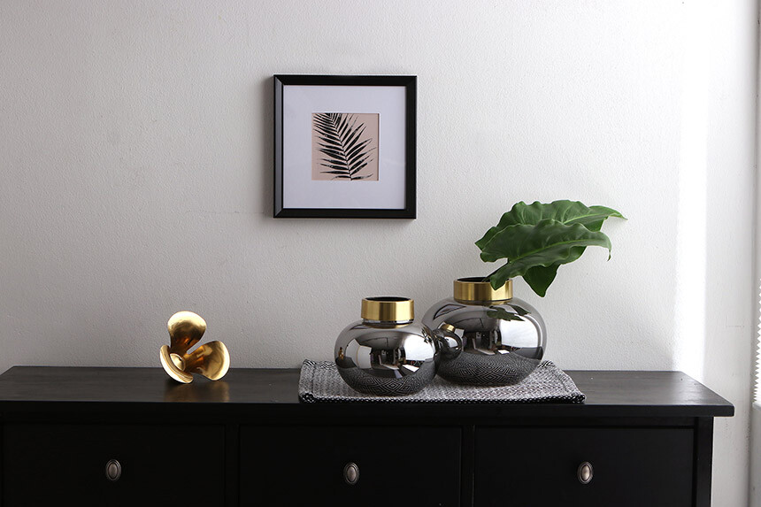 골드라인 림 메탈 미러 유리꽃화병(소)