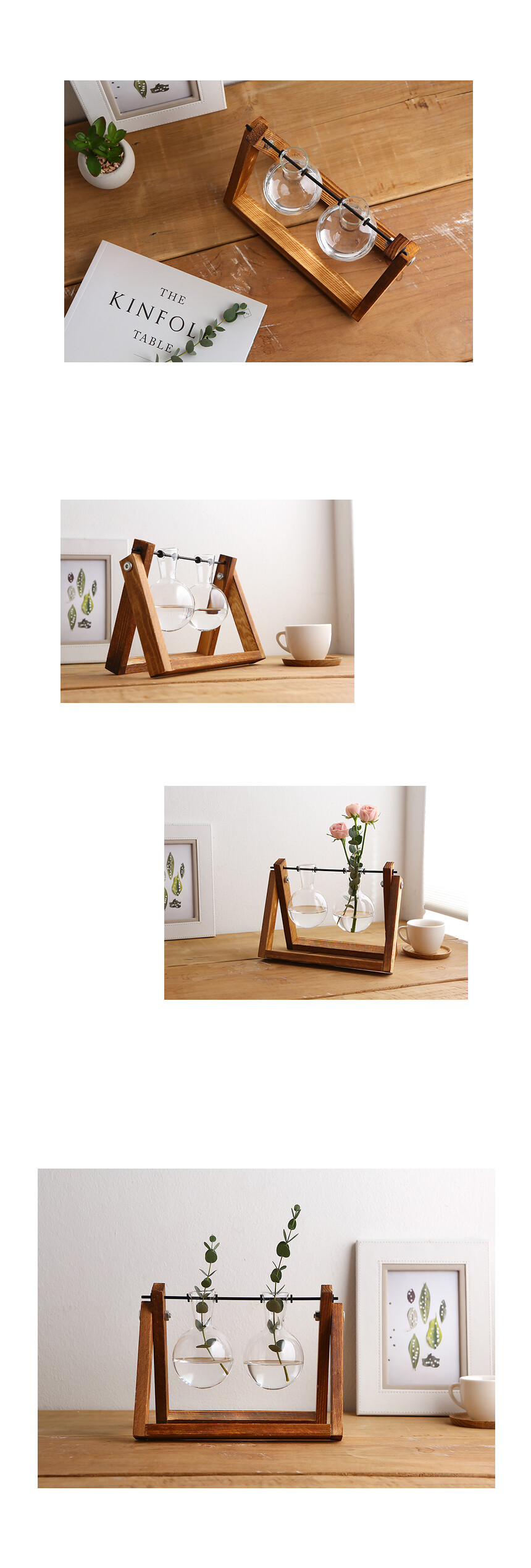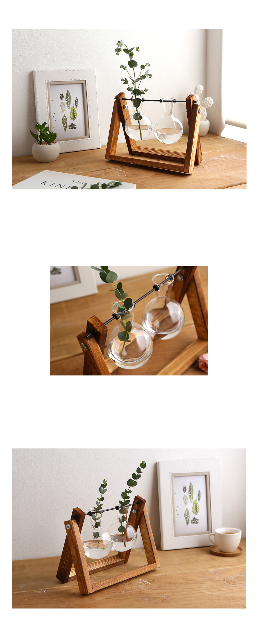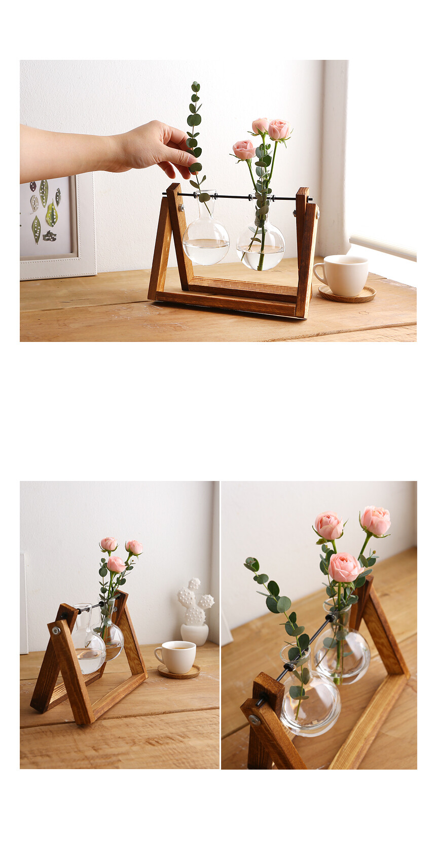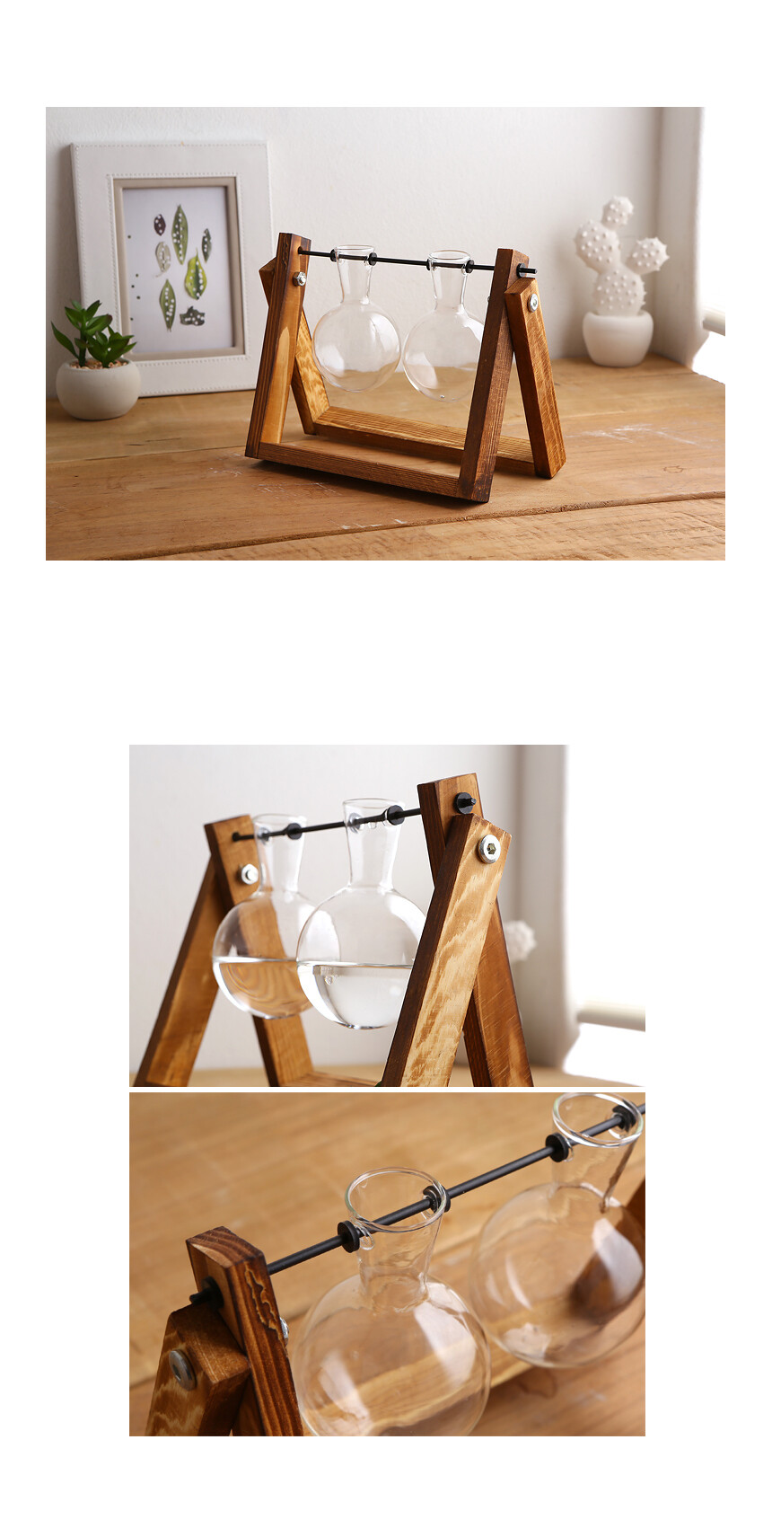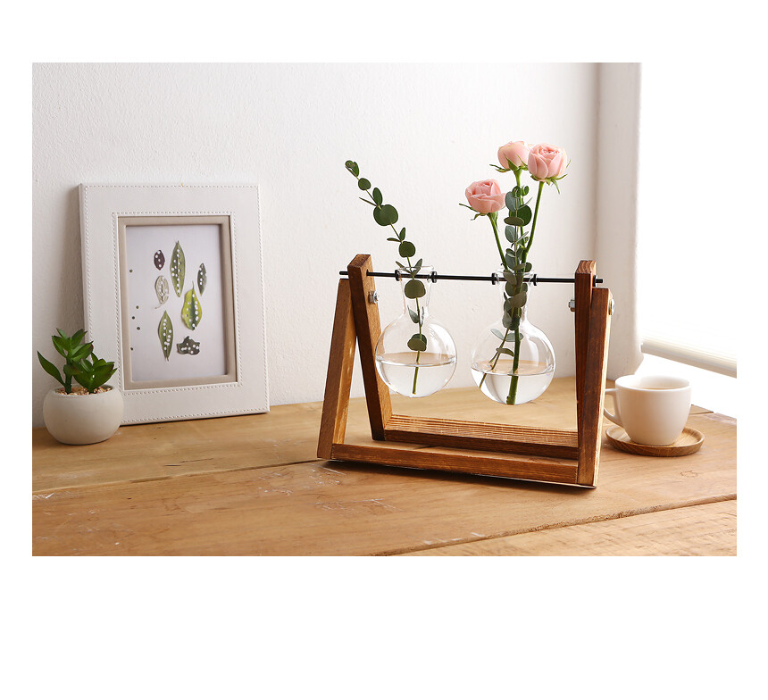 원목 스윙 호리 유리꽃화병 2구