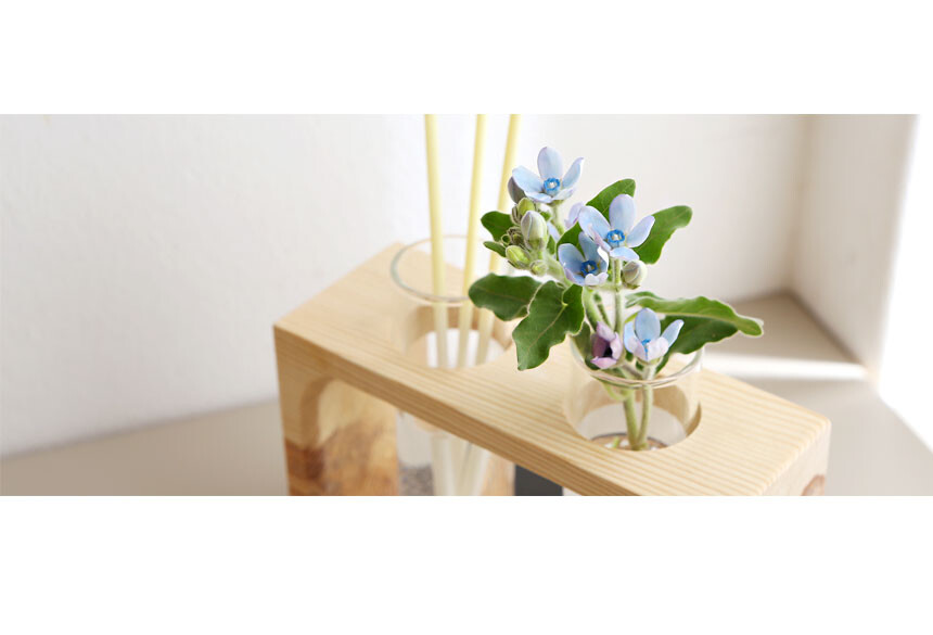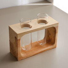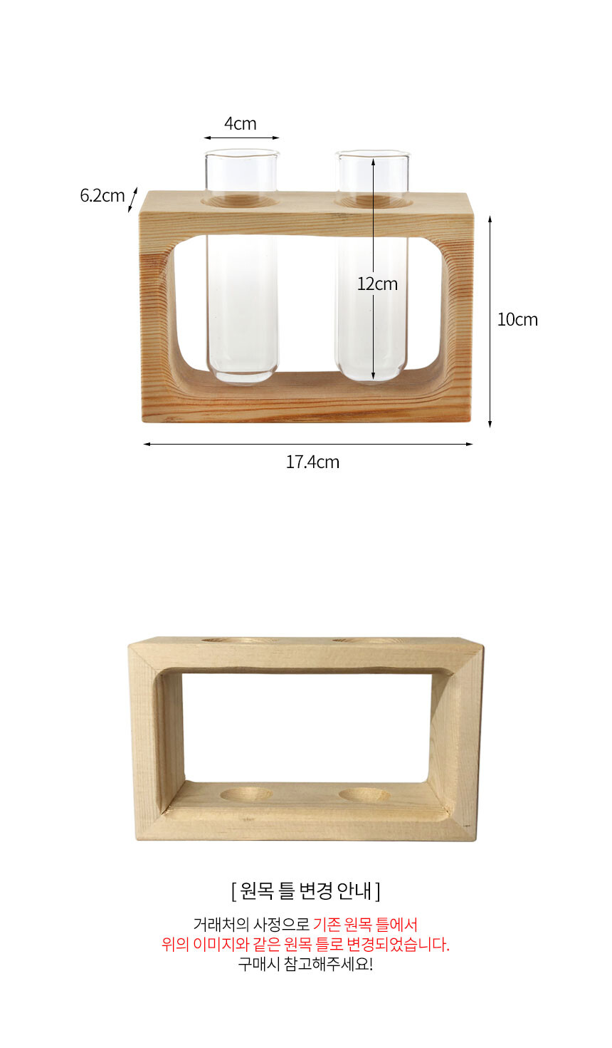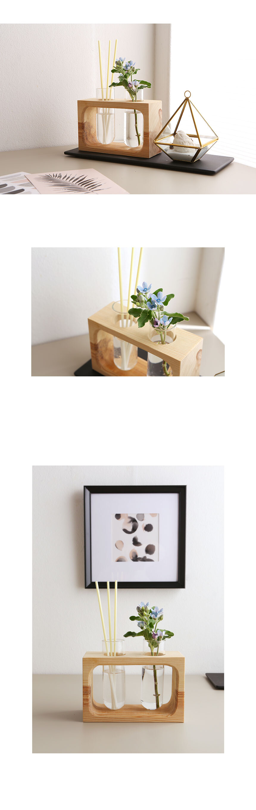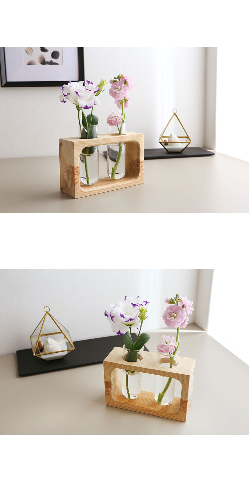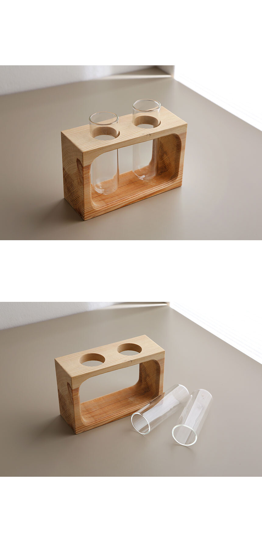 원목 유리 실린더 시험관 스탠드 꽃화병 2구