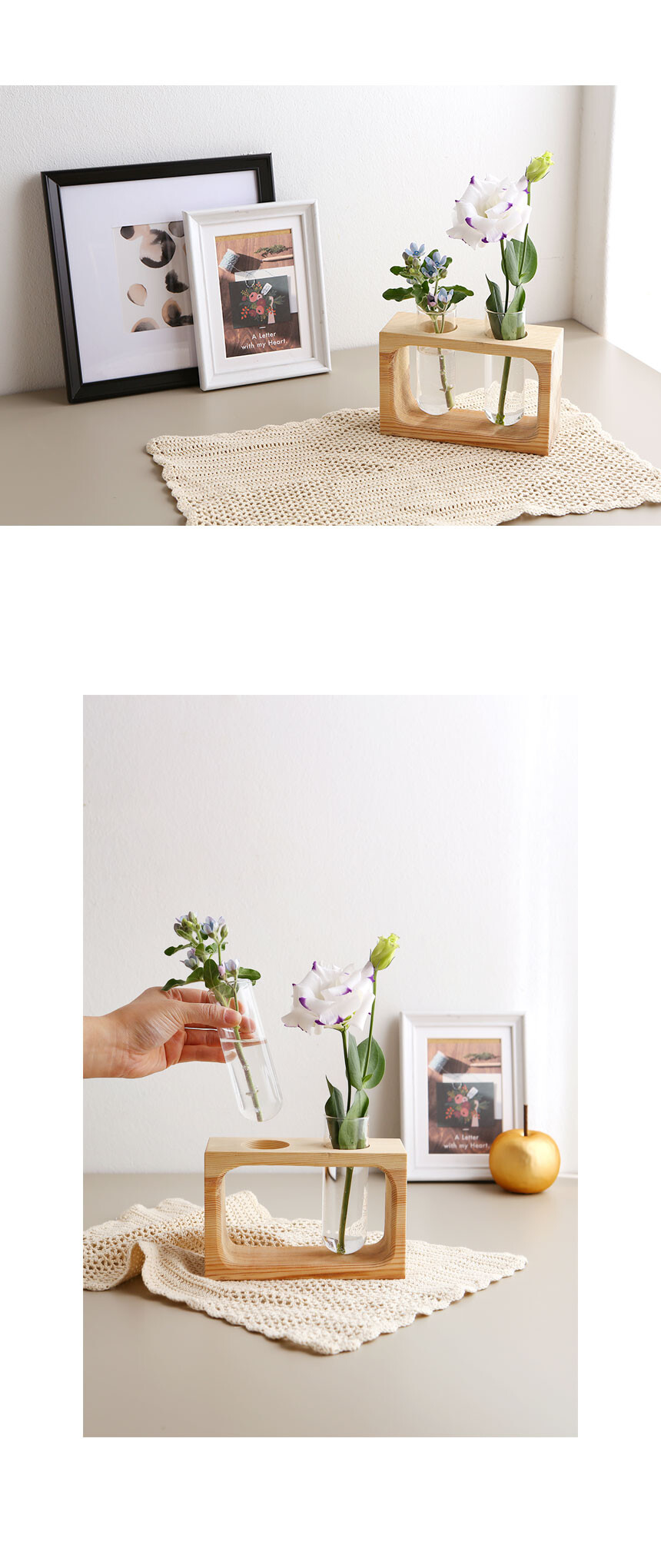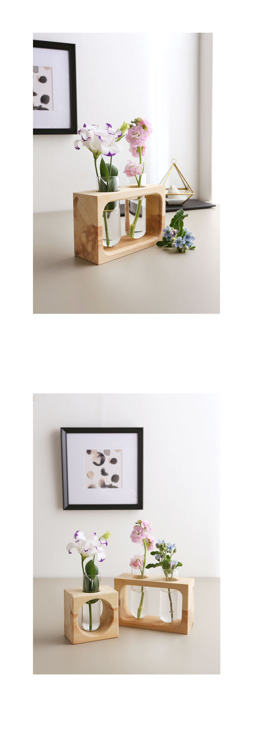 감성적인 내츄럴 원목 프레임 실린더 화병입니다.