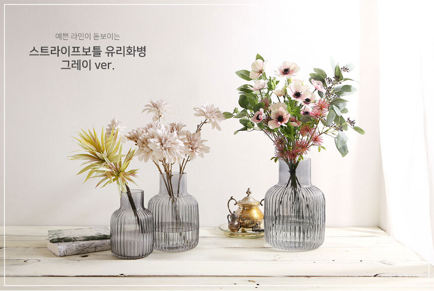 스트라이프보틀 유리꽃화병 그레이 (대)