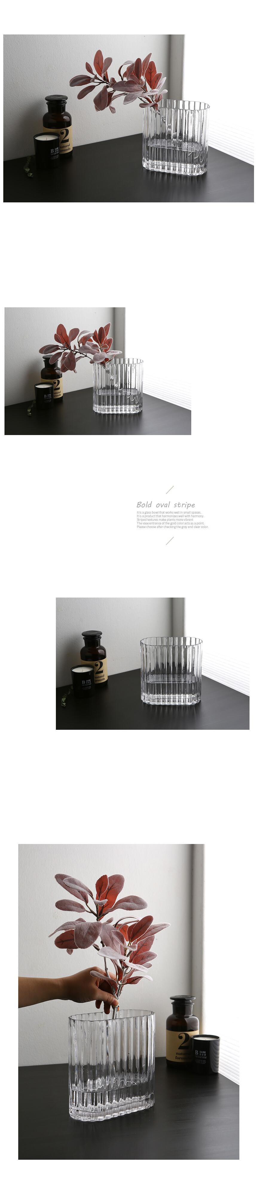 볼드 타원스트라이프 유리꽃화병 (소)