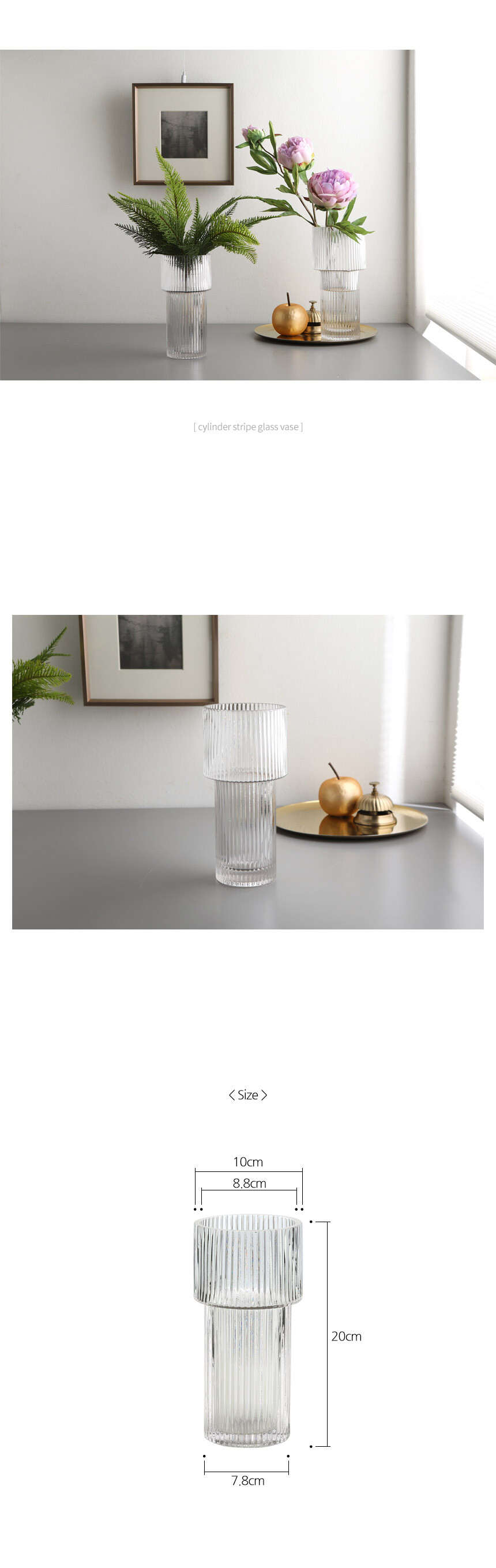 원기둥 스트라이프 인테리어 유리화병 (소)