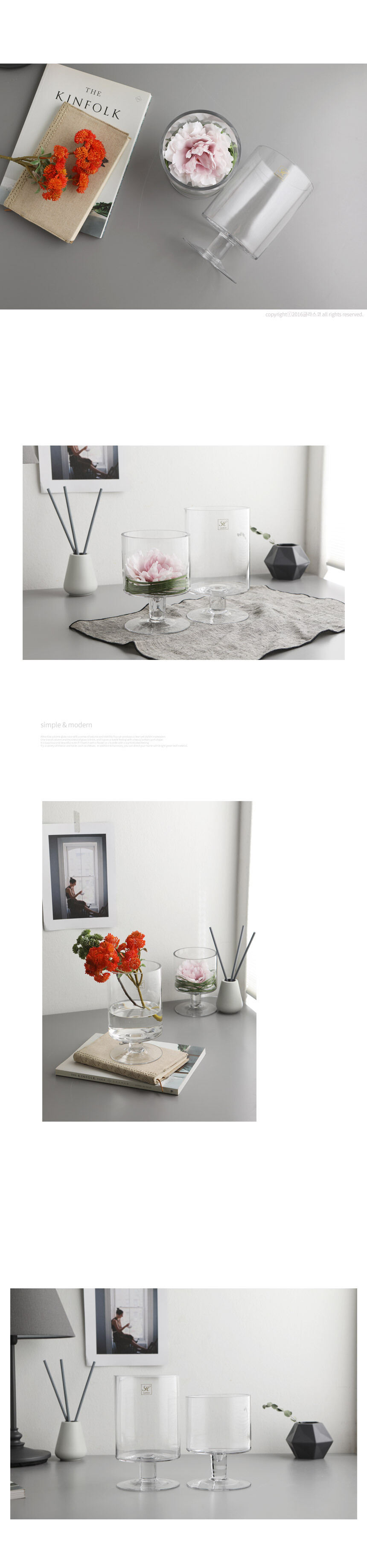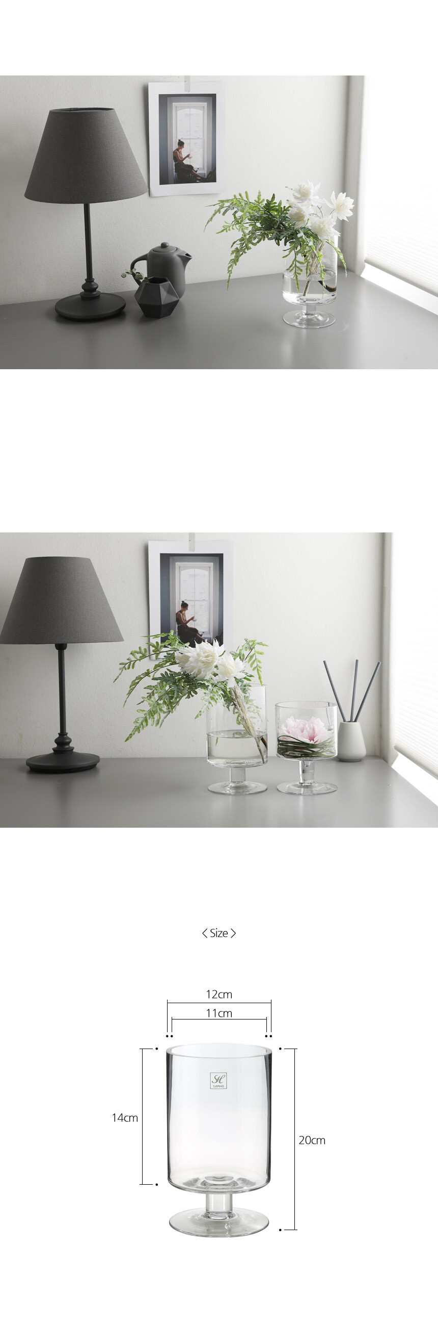 어디에서나 쉽게 연출하기 좋은 유리화병입니다.