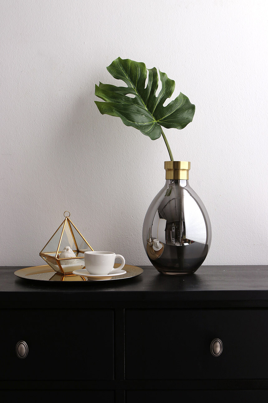 심플한 쉐잎에 골드포인트가 매력적인 유리화병,