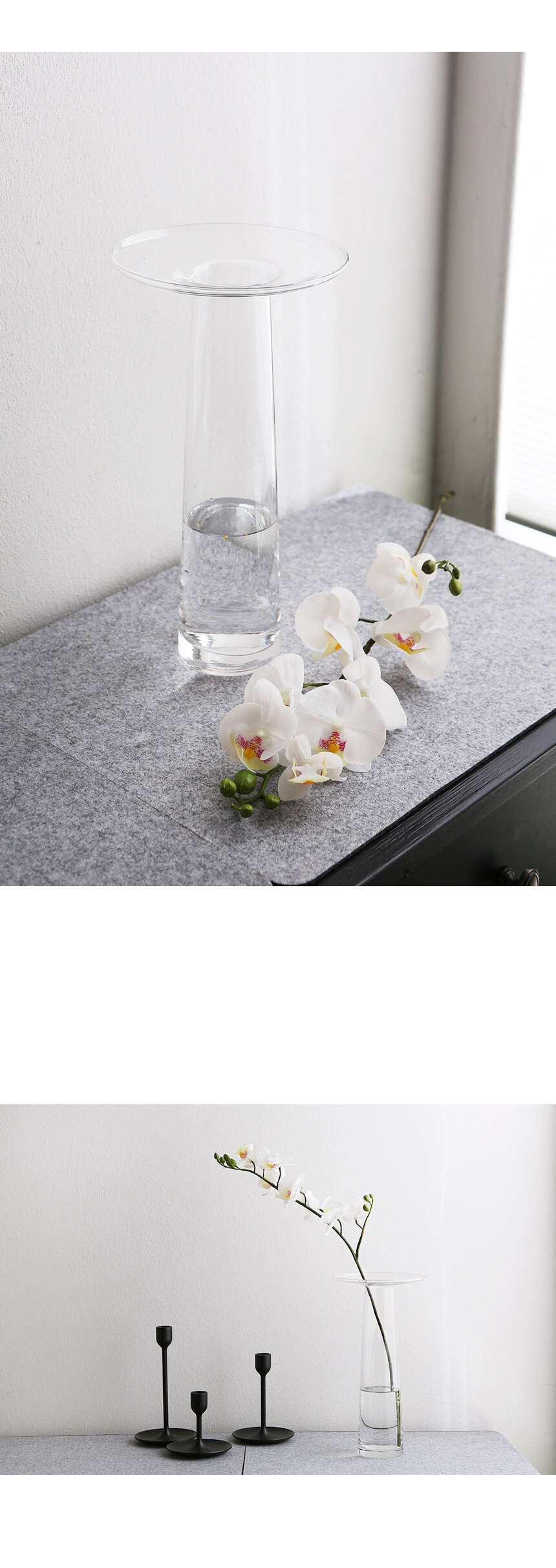 베이직한 쉐입에 트레이가 더해진 특별한 유리화병