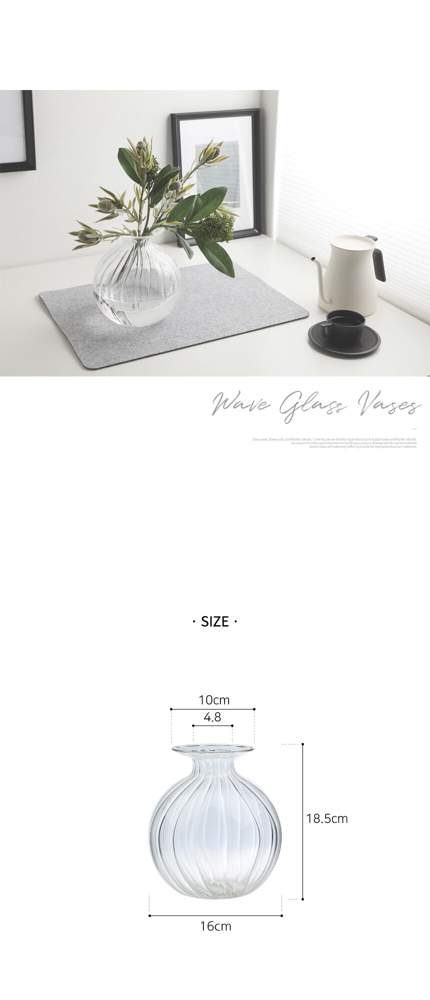 부드러운 라인의 웨이브 인테리어 유리화병.
