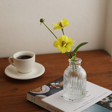 투명한 유리에 줄무늬 문양이 클래식한 감성을 담아내는 유리화병입니다.