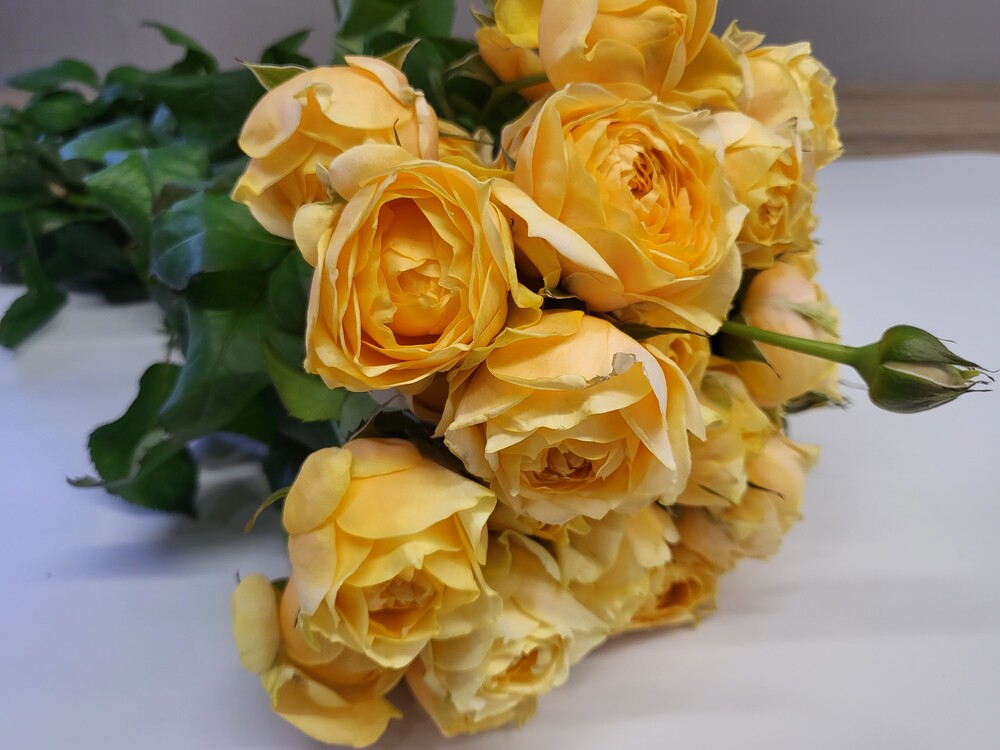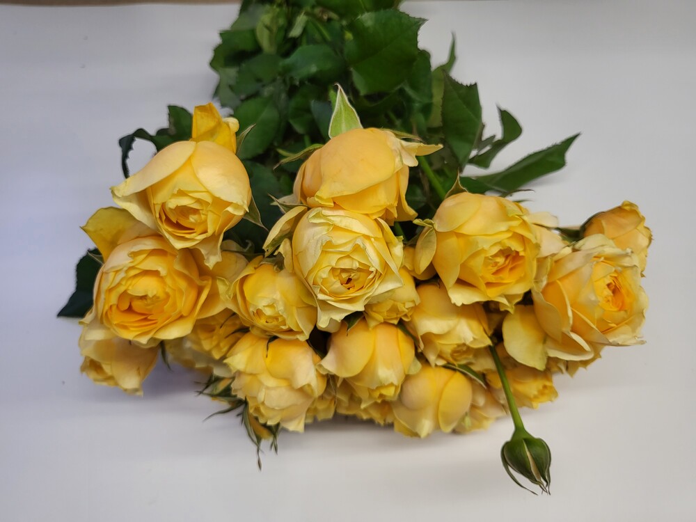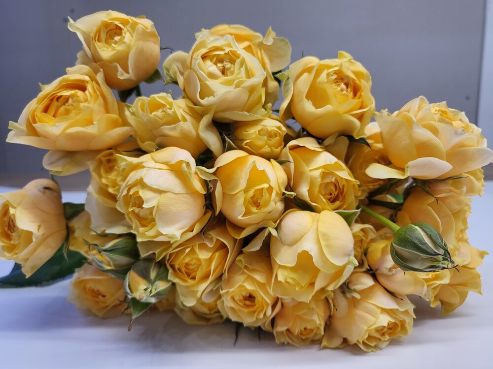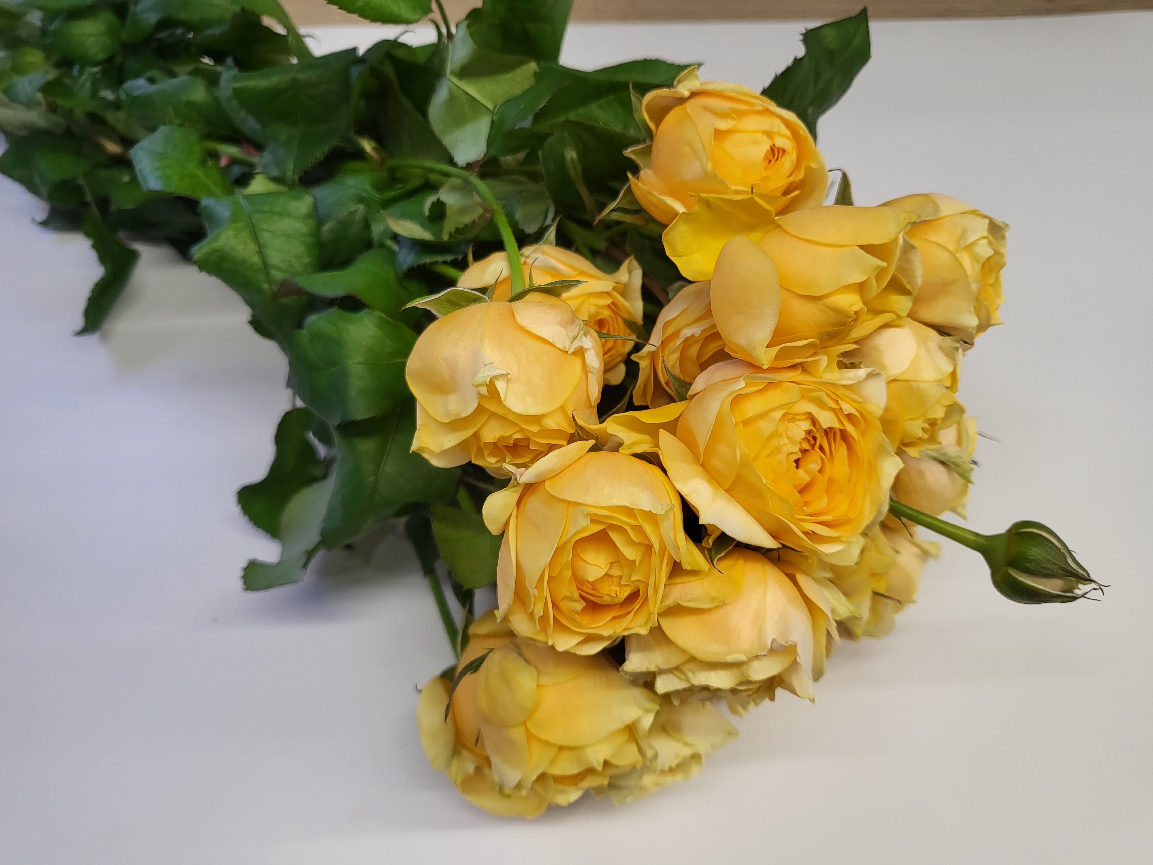 율두스(스프레이)는 노란색 계열의 장미로, 꽃이 계란 노른자처럼 동글동글한 모양입니다.