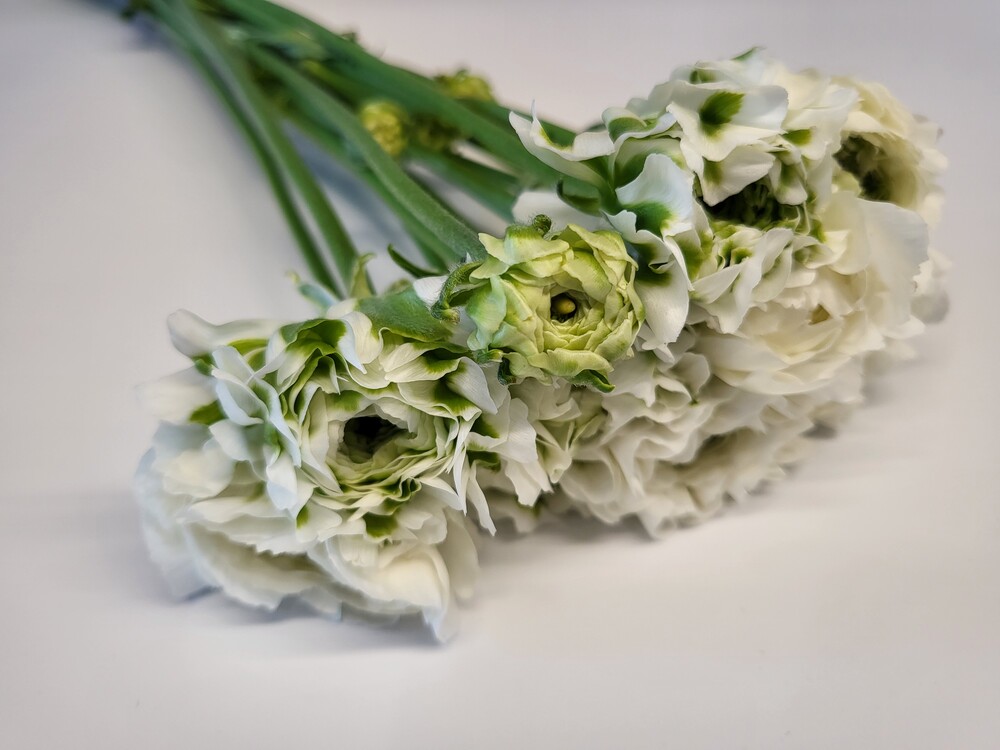 라넌큘러스 이글루는 흰색 꽃잎에 초록색 줄이 있는 꽃으로, 봄에 개화하며, 꽃이 화려하고 아름다워 관상용으로 많이 재배됩니다.