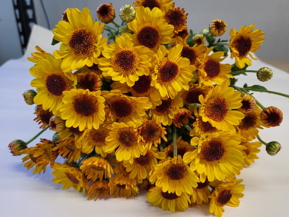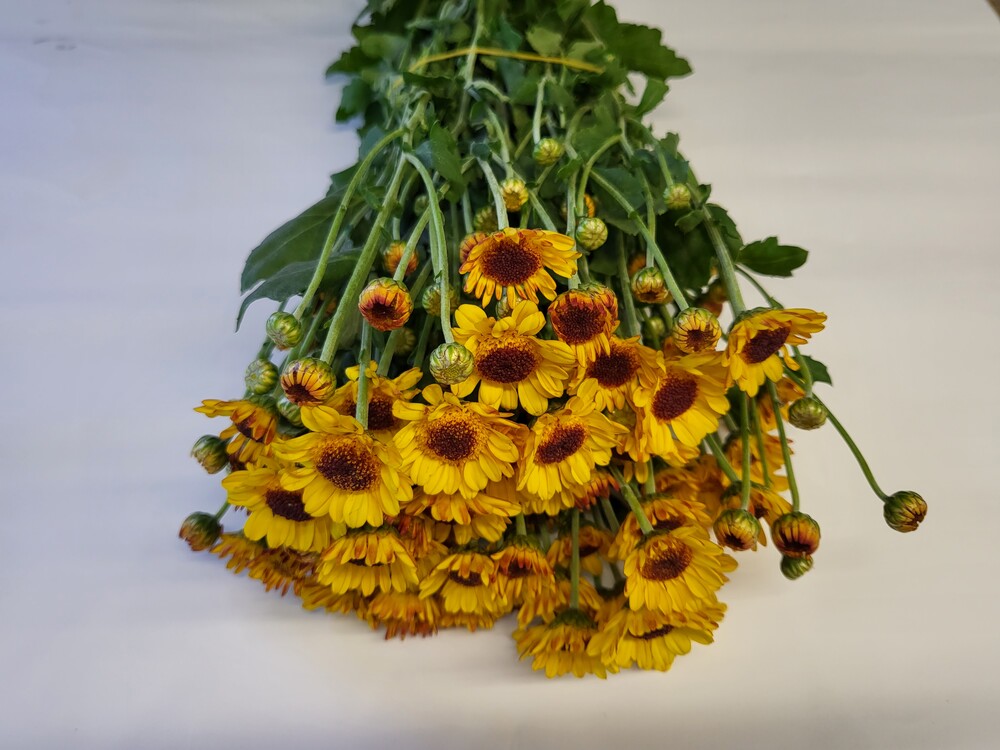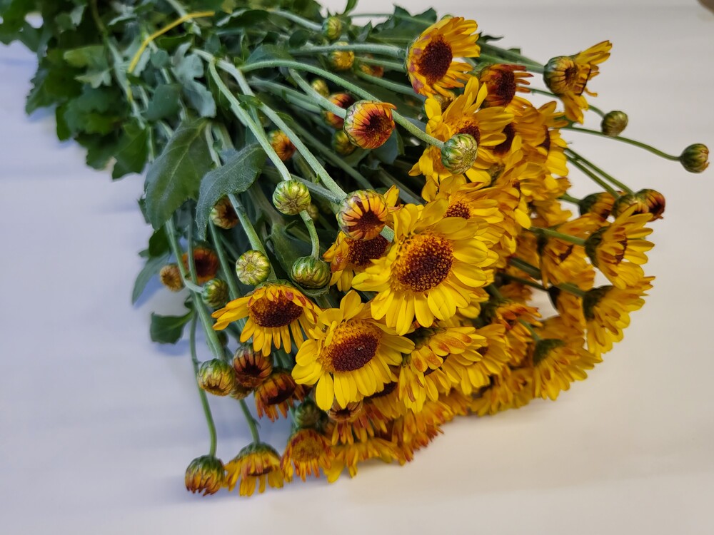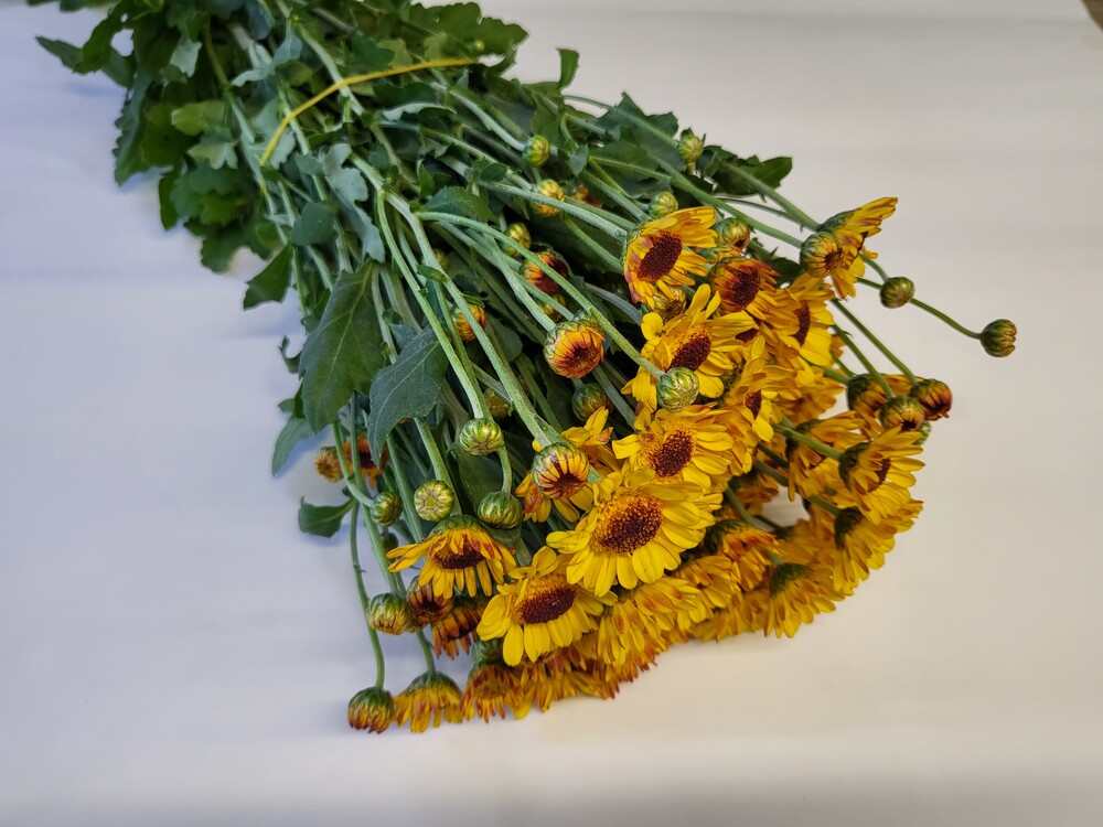 일월 소국은 국화과의 꽃으로, 노란색의 꽃이 피며 가운데 부분이 붉게 물든다는 특징이 있습니다.