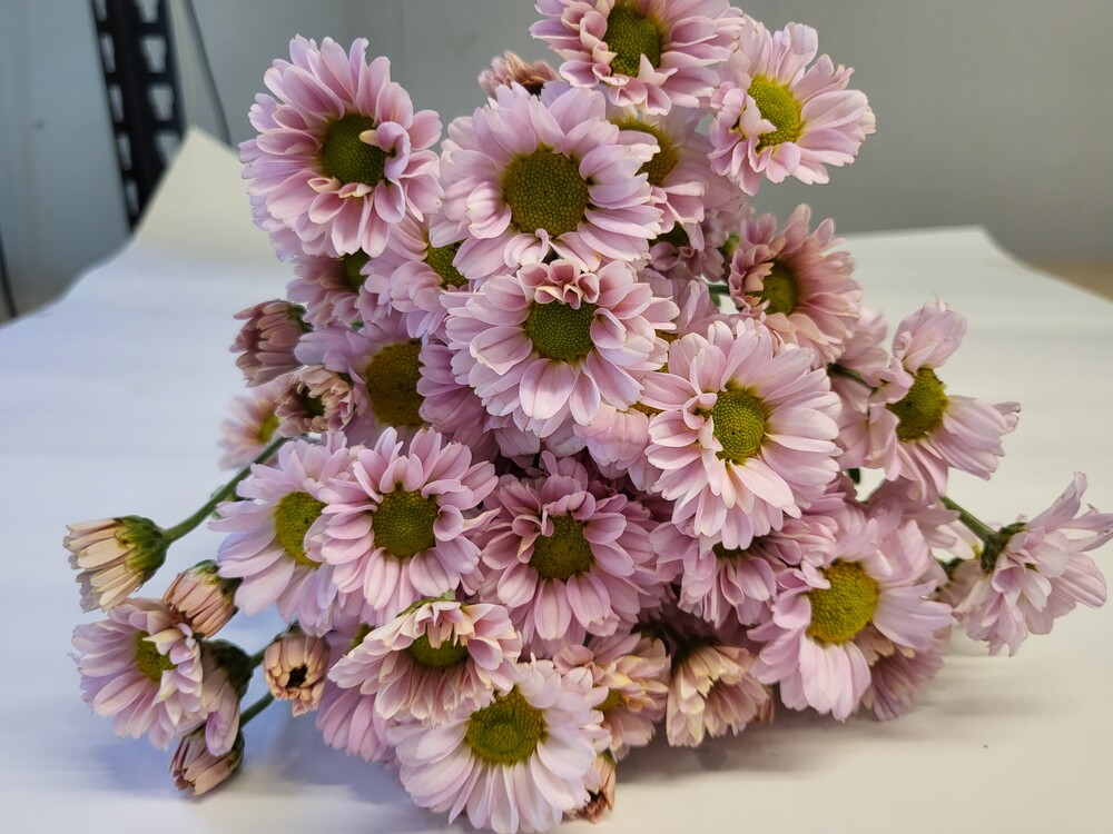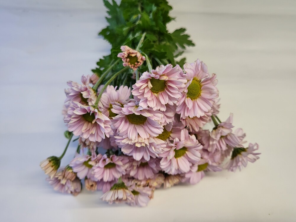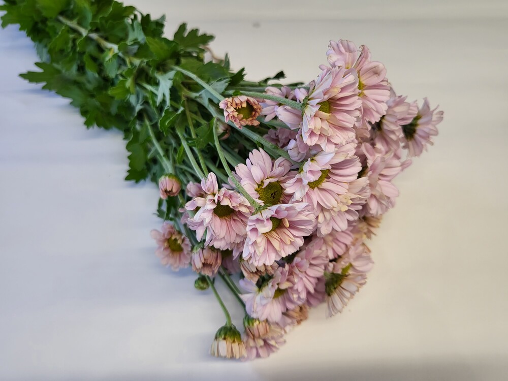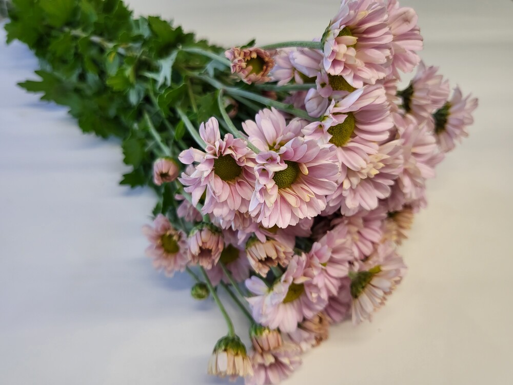 보라미 소국은 연분홍빛 꽃잎과 싱그러운 연두색 꽃밥이 특징인 소국의 품종입니다