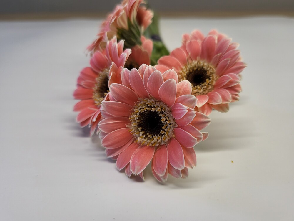 거베라 피콜리니 핑크는 작은 크기의 분홍색 거베라로 귀엽고 사랑스러운 느낌을 줍니다.
