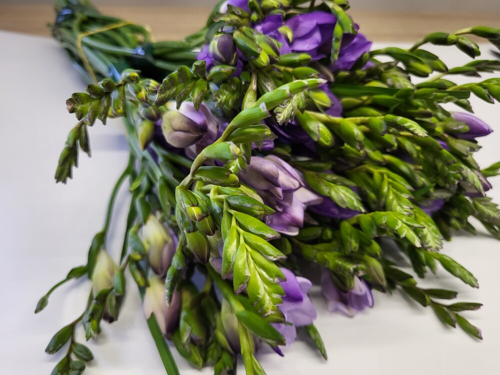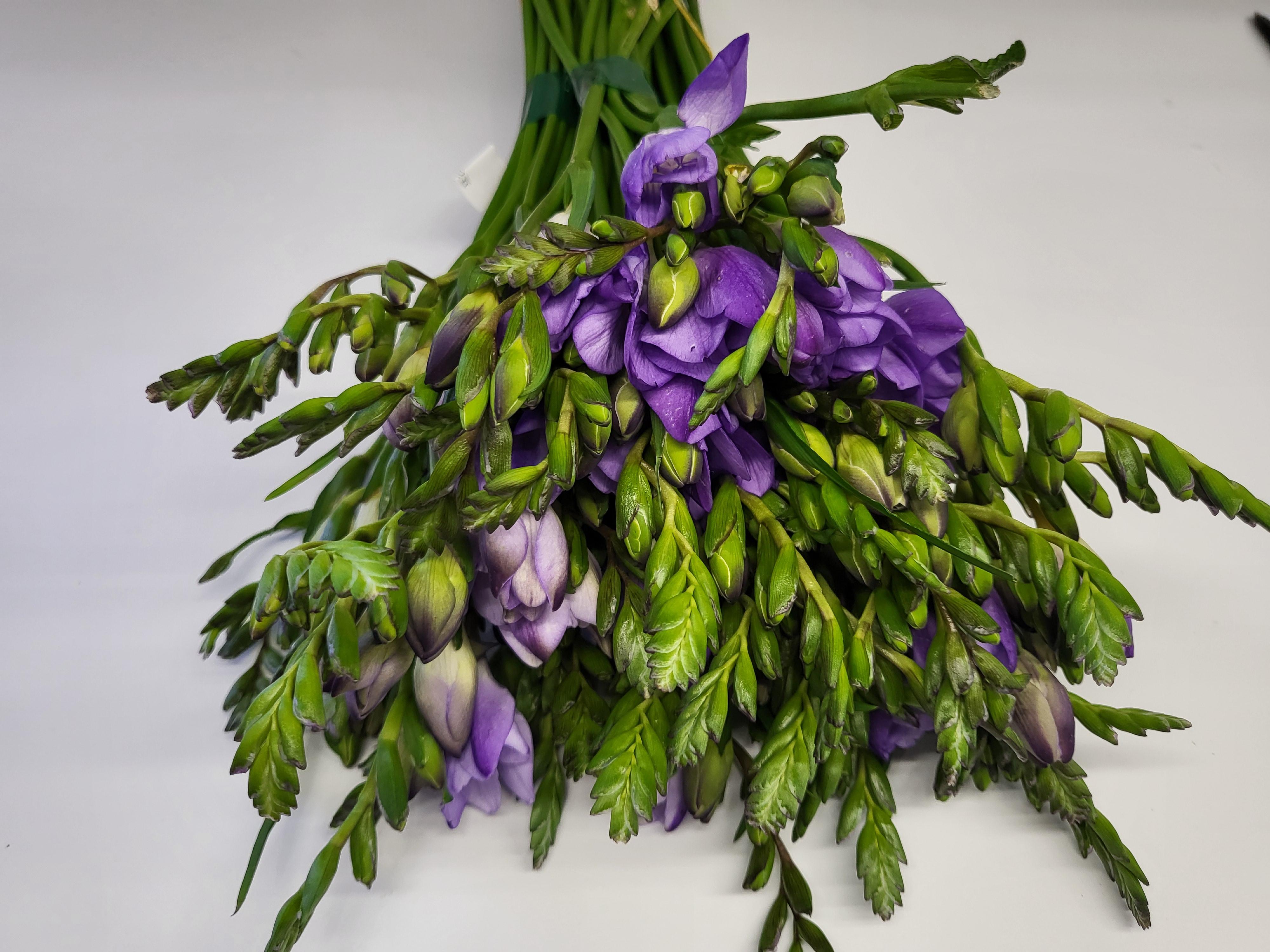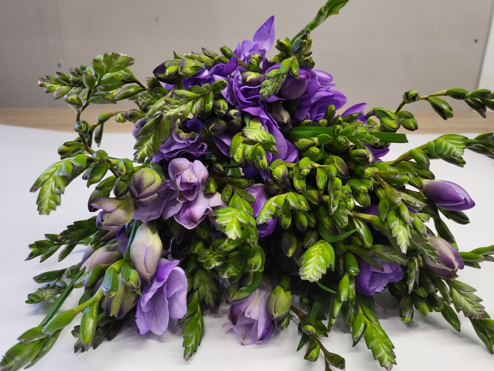 보라색 프리지아는 독특하고 아름다운 색상으로 인기가 많습니다.