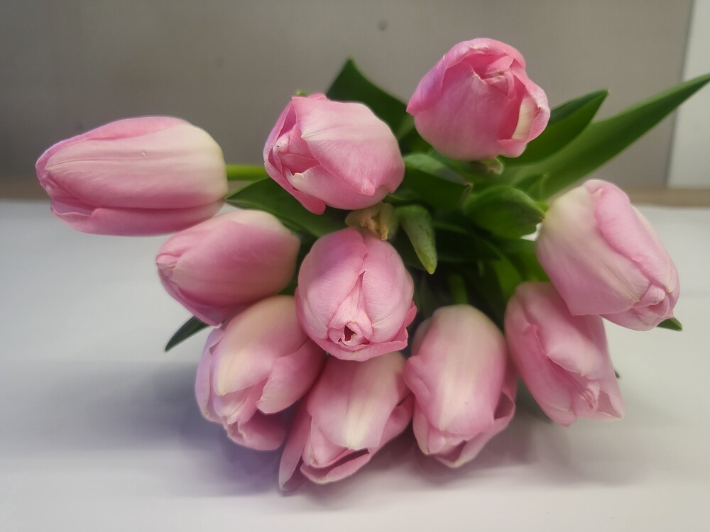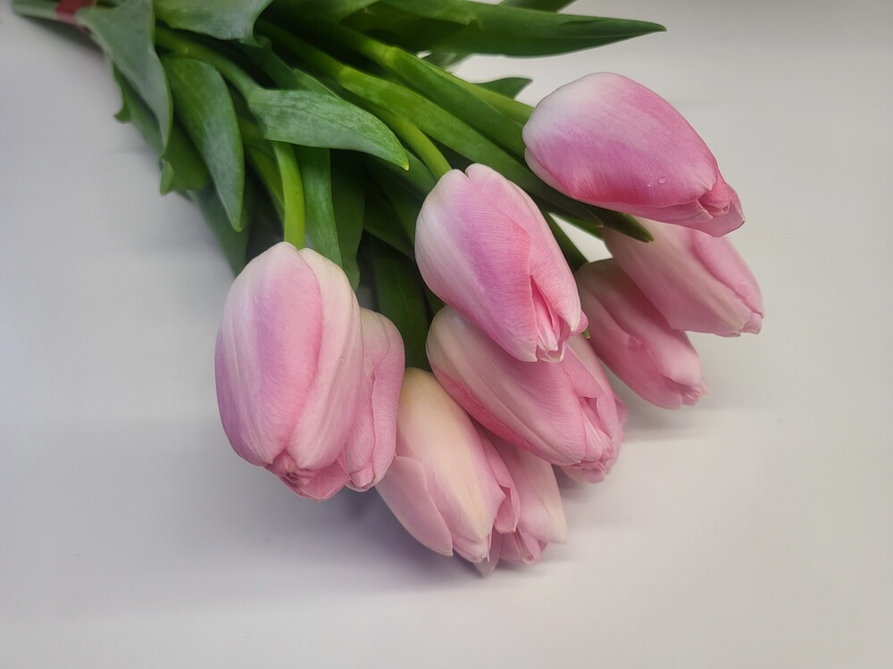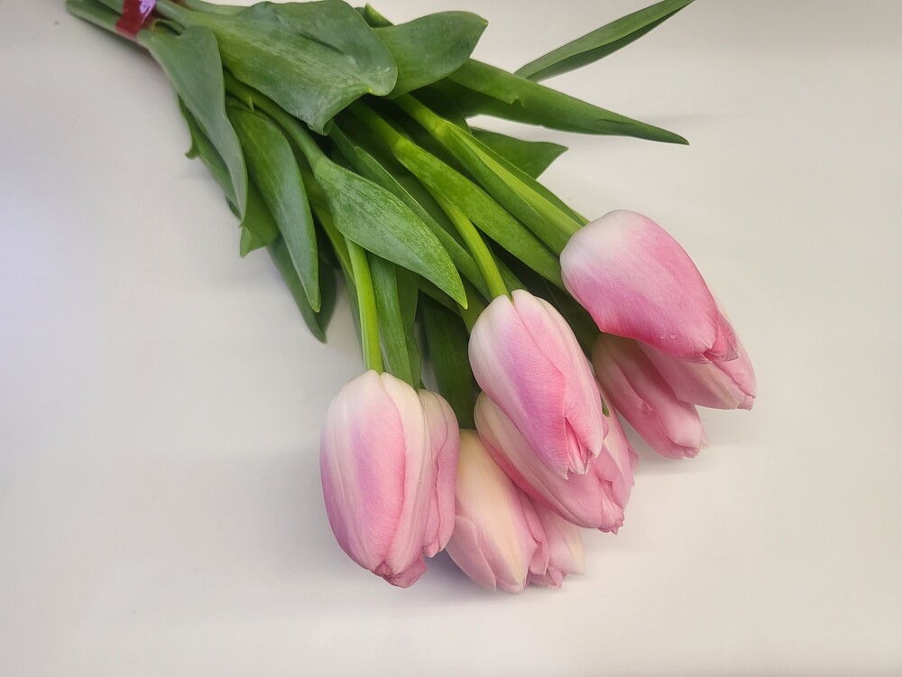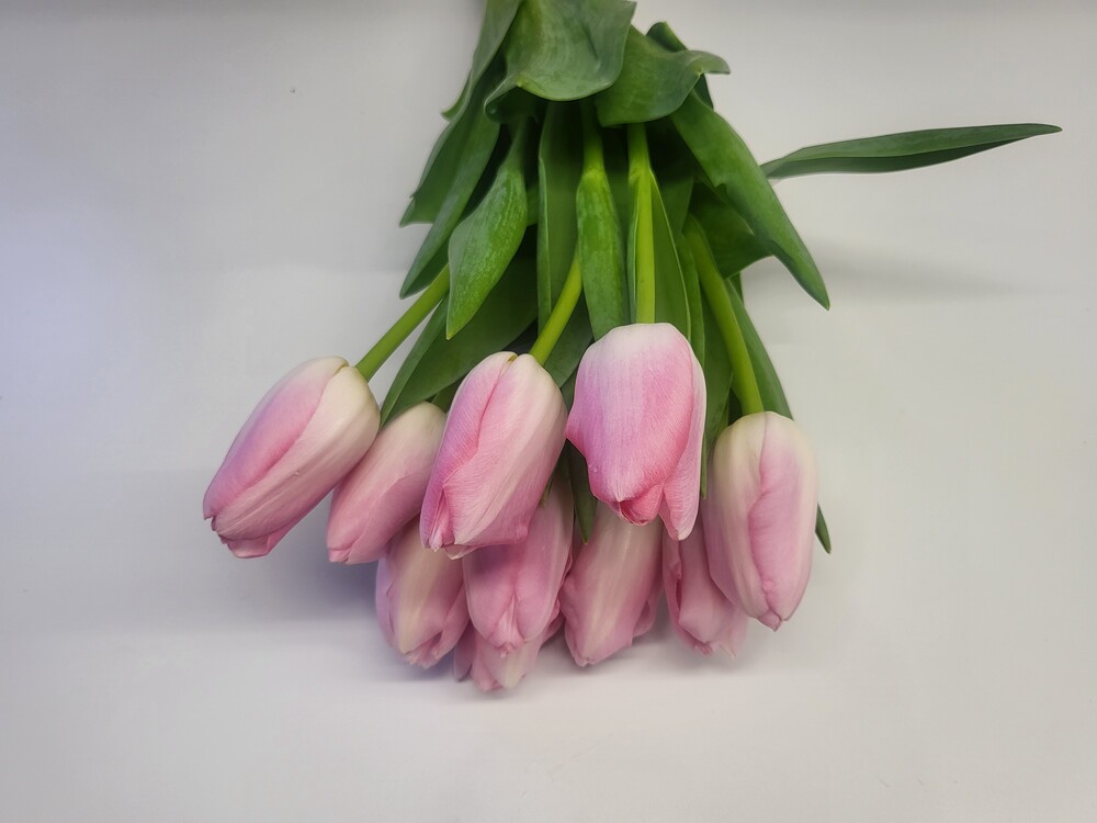 다이너스티 튤립은 사랑스러운 연핑크 색상의 튤립으로, 아래쪽은 하얀색이고 위로 올라갈수록